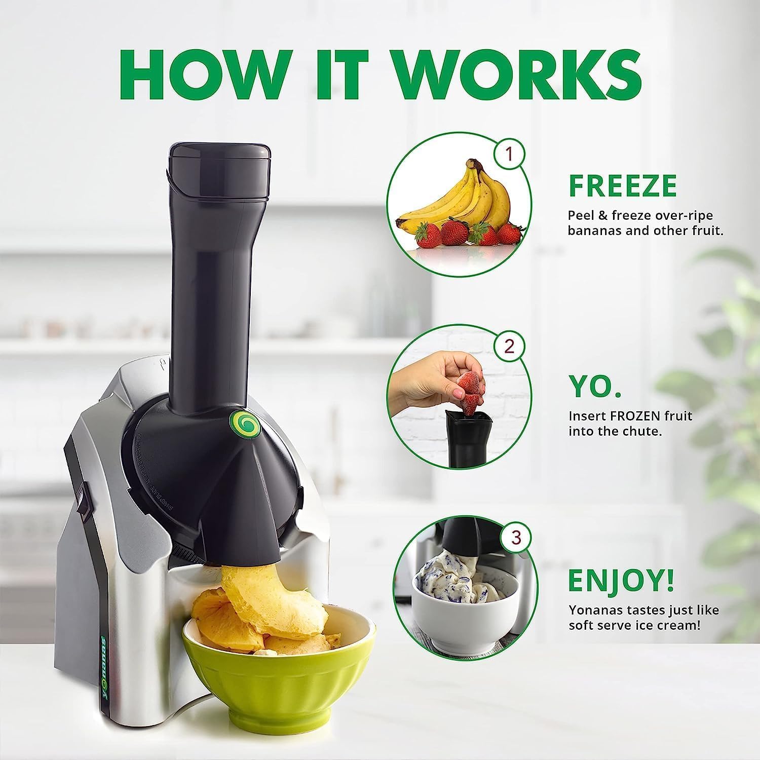 | Features | الميزات | Transforms Frozen Fruit into Soft Serve, Dishwasher Safe Parts, BPA Free | يحول الفواكه المجمدة إلى آيس كريم ناعم، أجزاء قابلة للغسل في غسالة الأطباق، خالي من BPA |