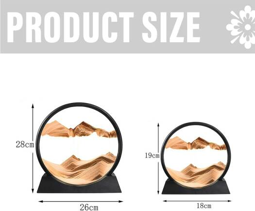 | Design | التصميم | Circular Frame with flowing sand | إطار دائري مع رمال انسيابية |